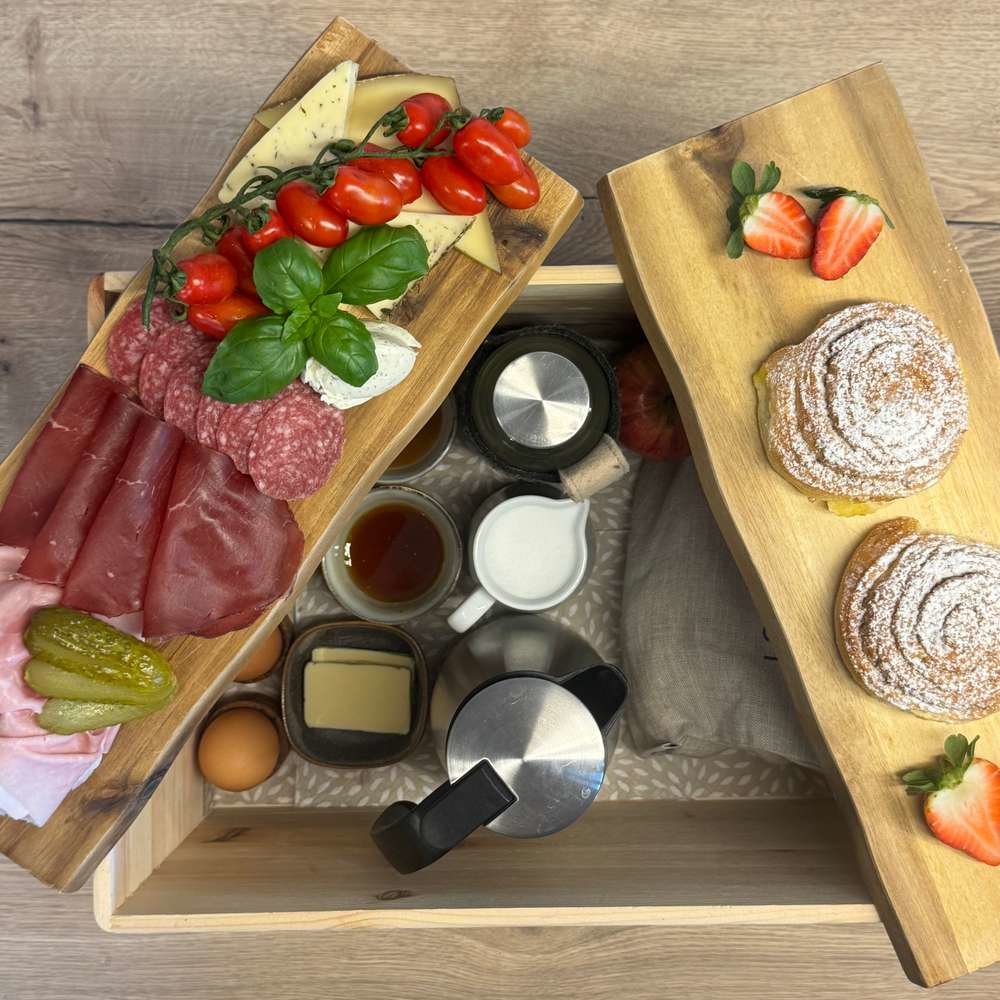 Frühstück pro Person: 24,00 €. Frühstückskorb ab 2 Personen: 40,00 €.